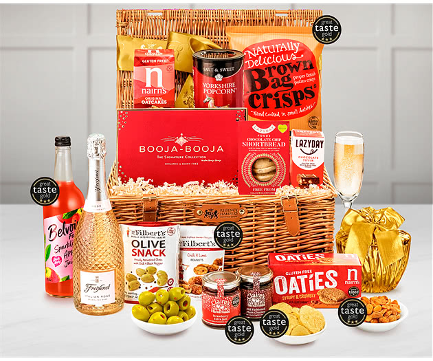 Celebration-Ready Beverages: This deluxe hamper features premium Freixenet Prosecco alongside Belvoir's refreshing Sparkling Pink Lady Apple Juice, ensuring everyone can toast in style regardless of dietary requirements.