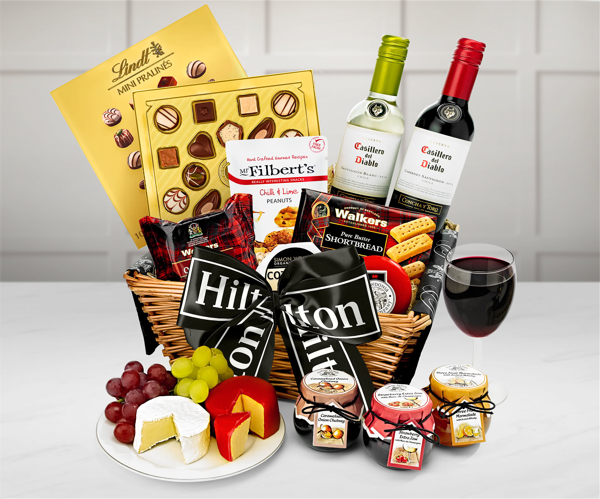 Bespoke Branded Trafalgar Hamper With Red & White Wine