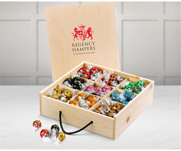 Partitioned Wooden Sweet Box with "Cotswold Luxury" Printed Sliding Lid