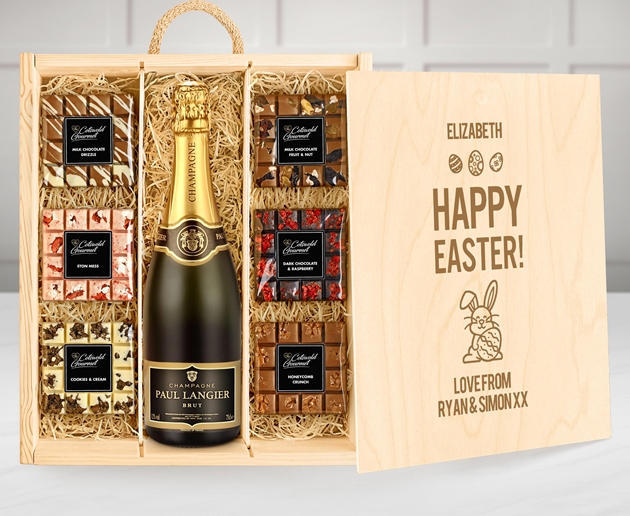 The Easter Large Personalised Chocolate Tasting Experience with Champagne helps you make the most of the Easter weekend. Packed with delightful snacks both sweet and savoury, there's something for every member of the family to enjoy as you unwind and appreciate this special time of year. This is an Easter hamper that's sure to go down a treat no matter who's indulging in it.