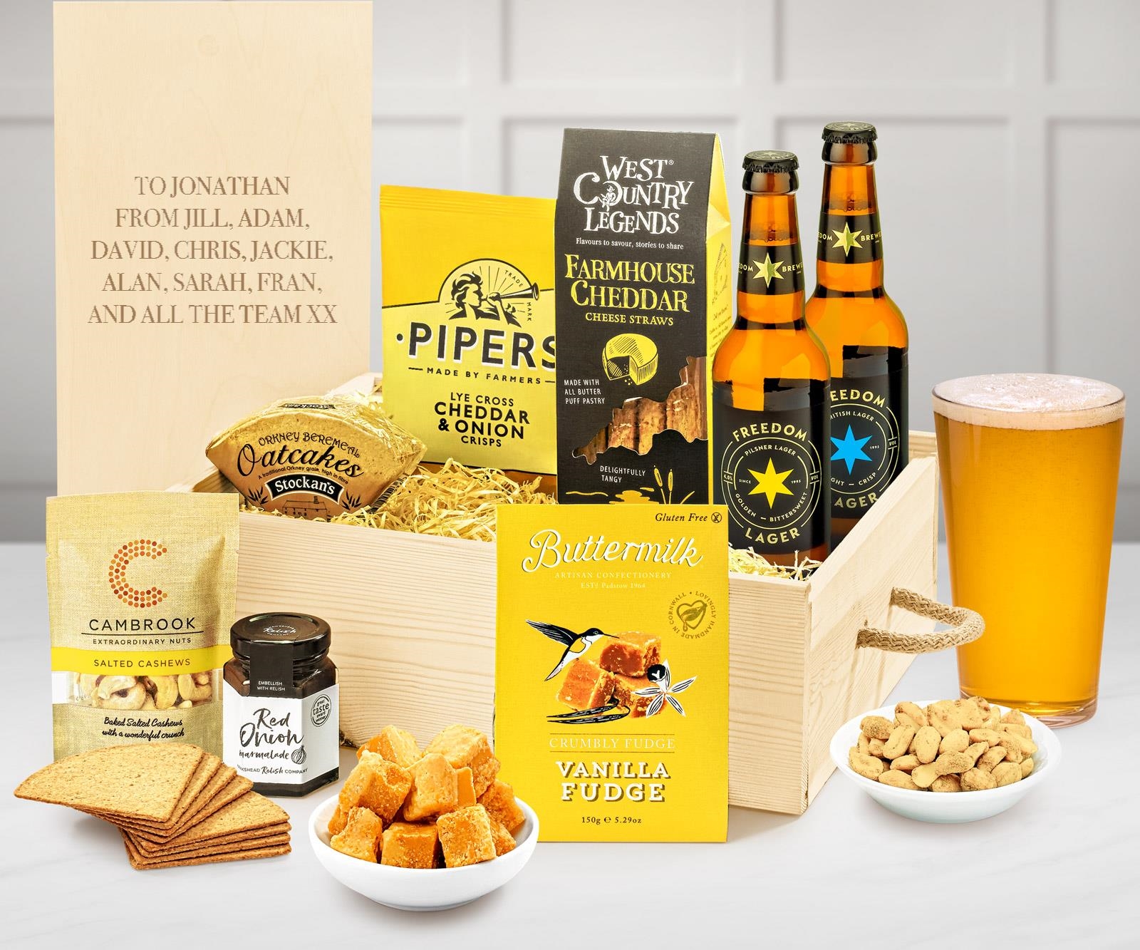 A new home is an exciting milestone for anyone, and certainly one worth celebrating. At the same time it can be a tiresome process, and once the move is done, a bit of rest and restoration may be needed. If you have a loved one who has just moved into a new home, you can help them celebrate and take the edge off with a dazzling housewarming hamper like the Housewarming Personalised Man Treats Gift Box with Beers.