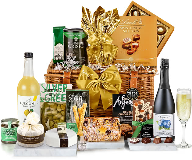 Our Buckingham Banquet Hamper is packed with cheeses, chutneys, olives, bread things and crisps as well as plenty of sweet treats such as cakes, biscuits, jams and chocolates. There are plenty of alcohol-free drinks such as lemonade and sparkling presses in a range of delicious flavours.