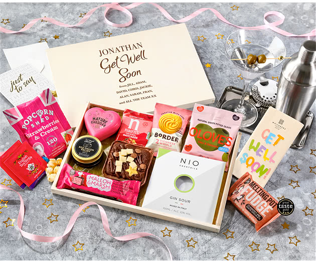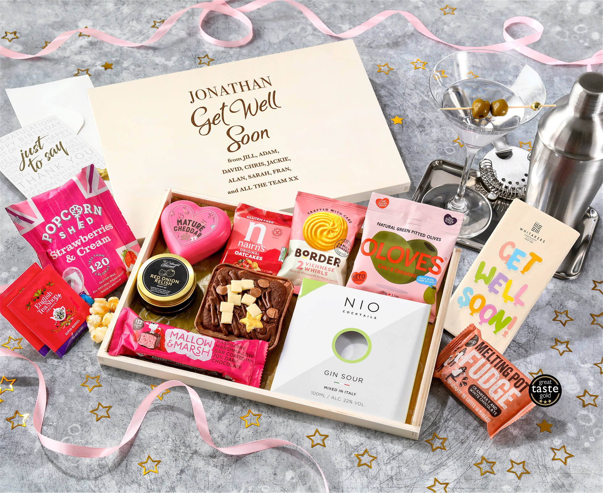 Get Well Soon Pink Cocktail & Cheese Letterbox Hamper With Gin Sour