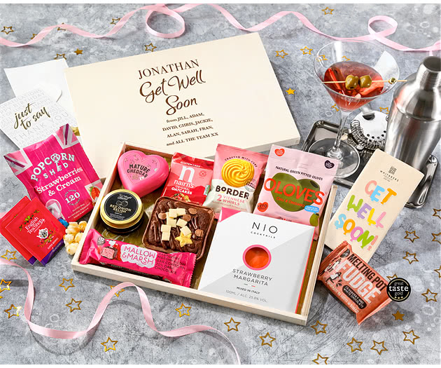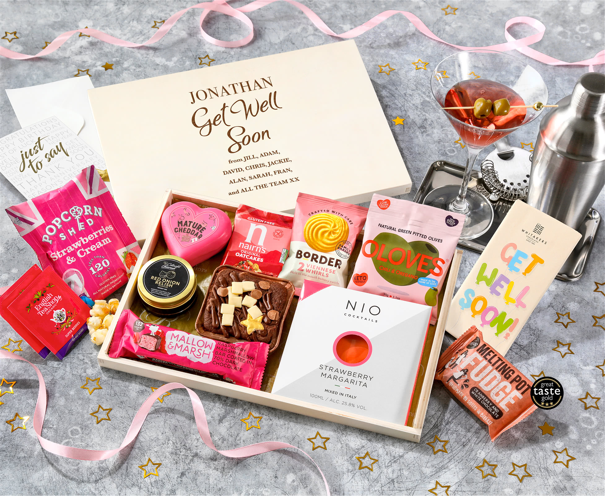 Get Well Soon Pink Cocktail & Cheese Letterbox Hamper With Strawberry Margarita