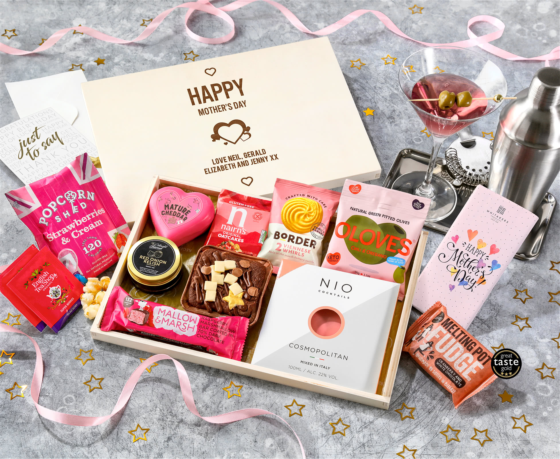 Mother's Day Pink Cocktail & Cheese Letterbox Hamper With Cosmopolitan