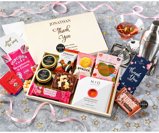 Gourmet Selection: Treat yourself to an assortment of artisan foods that are a cut above the rest—like Divine Dark Chocolate with Raspberries, Reids of Caithness Raspberry and White Chocolate Shortbread, and handmade Cranberry and White Chocolate Fudge. The collection goes on to showcase Italian olives, traditional dry roast peanuts, and a not-so-mini chocolate cake, giving you the perfect excuse to luxuriate.