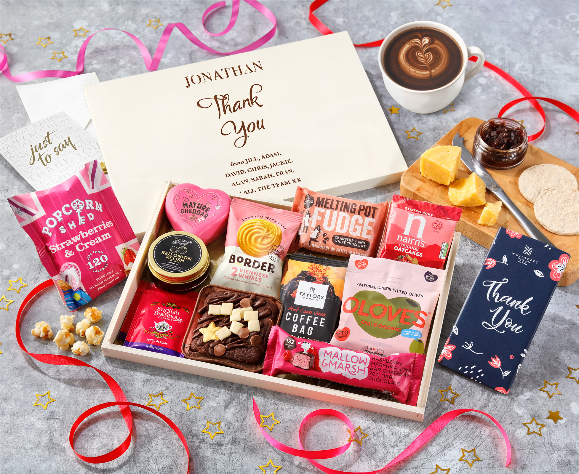 Delectable Sweet Treats Collection: Indulge in an array of pink-themed delights, including Reids of Caithness Raspberry & White Chocolate Shortbread, Popcorn Shed's Strawberries & Cream gourmet popcorn, and Melting Pot's handmade Cranberry & White Chocolate Fudge that work together to create a delectable symphony of flavours.
