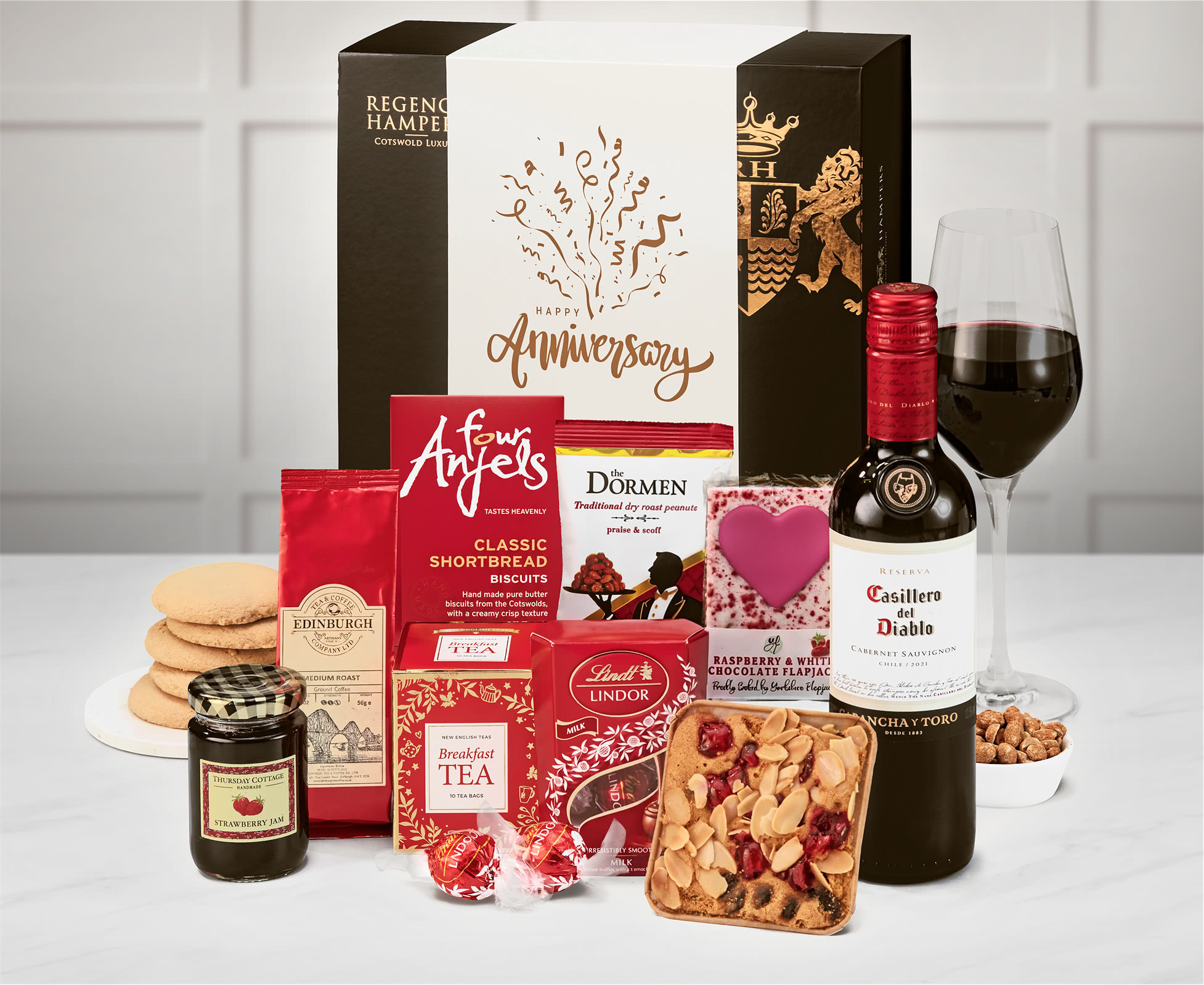 Anniversary Delicious Delights Box with Red Wine