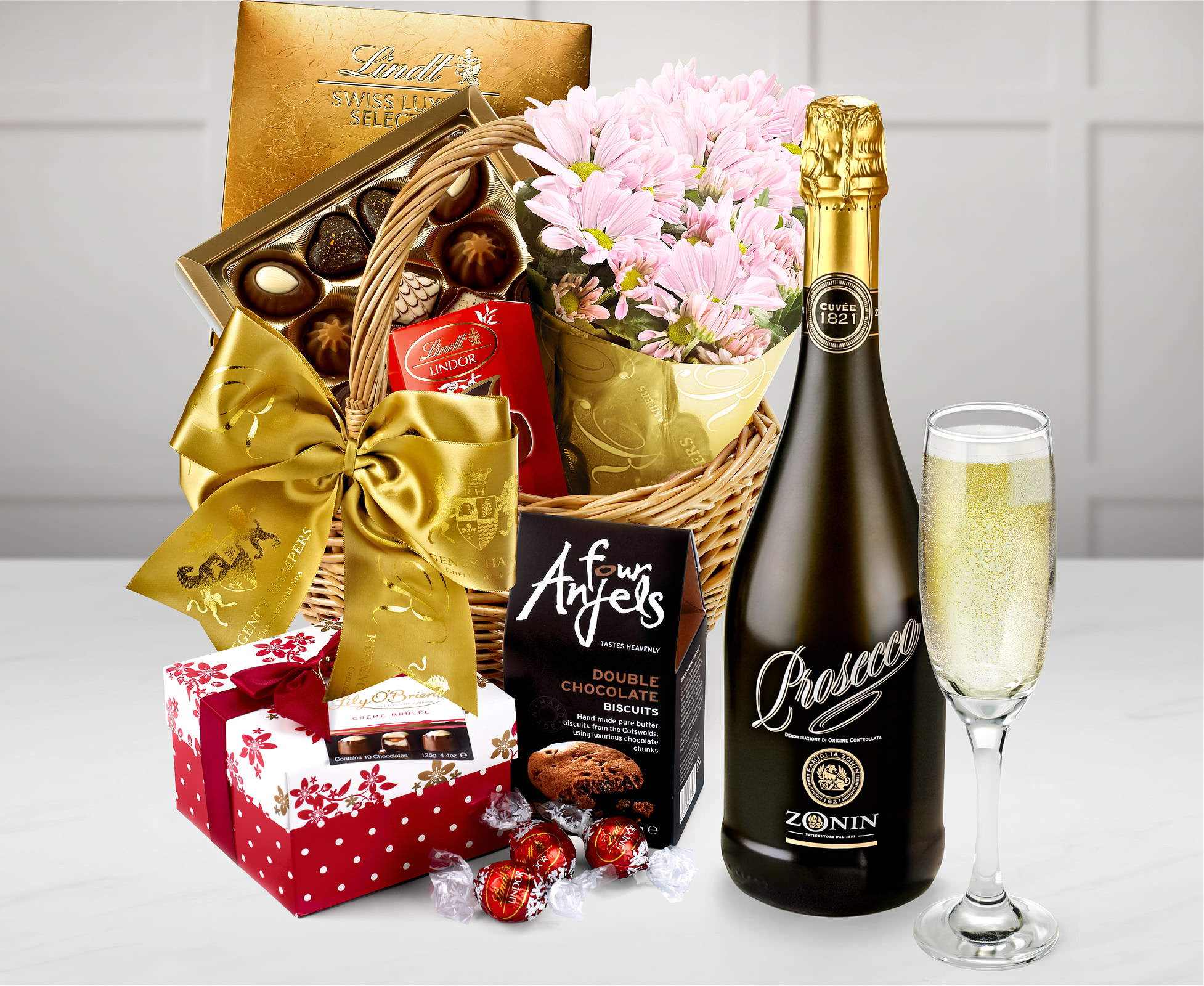 Chocolate Indulgence & Flowers Hamper With Prosecco